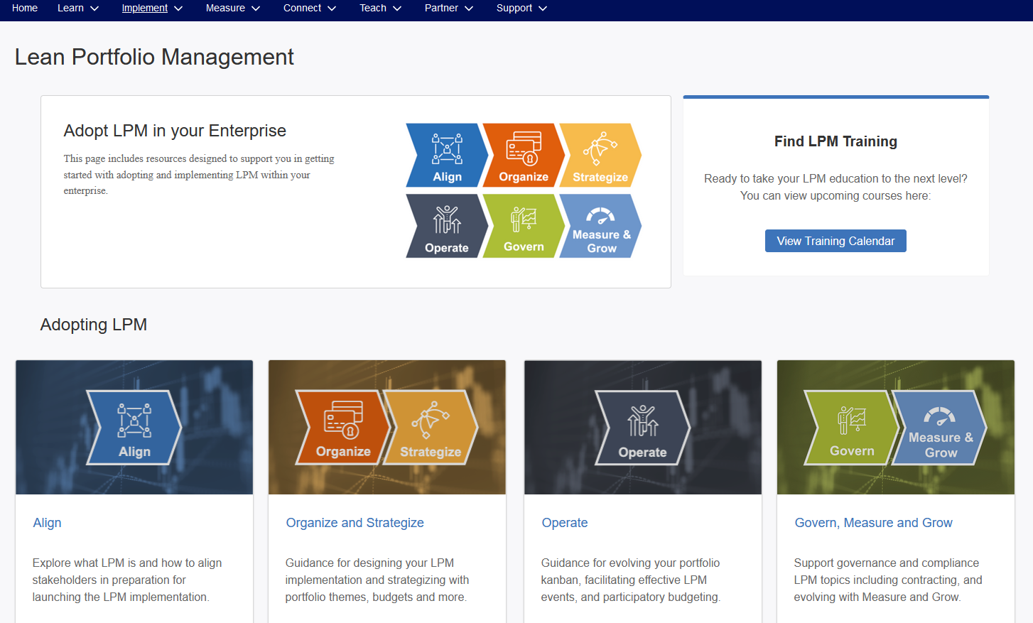 Personally, I love the SAFe Community site’s iterative and ‘Start Where You Are’ approach, that allows you to tailor the content to your enterprise experience without compromising the intent of the competency. It values creating a group of change agents and working together to implement right off the bat, focusing on the “value stream” for LPM: “Align, Organize, Strategize, Operate, Govern, Measure and Grow”. I use this site regularly to revisit concepts, and it has already served as a very important and practical resource for me.